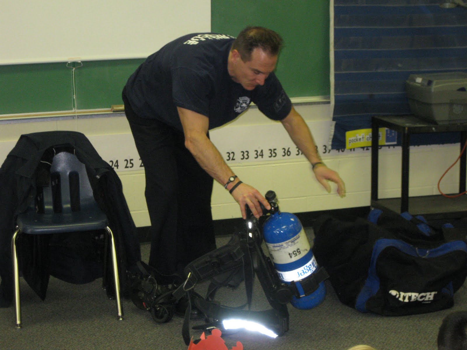 Today we invited Mr. Brian MacGillivray into our classroom to teach us about fire safety. Firefighter Brian is a firefighter with the Vancouver Fire Department. He told us all about the ABC's of fire safety, smoke detectors, how to safely leave a burning building, how to make a fire plan to get out of our homes in case of a fire, and when to STOP, DROP and ROLL. Firefighter Brian also showed us some of the awesome (and noisy) equipment that he uses when he is working hard to fight fires! We even got Fire Chief hats to remember the day!!